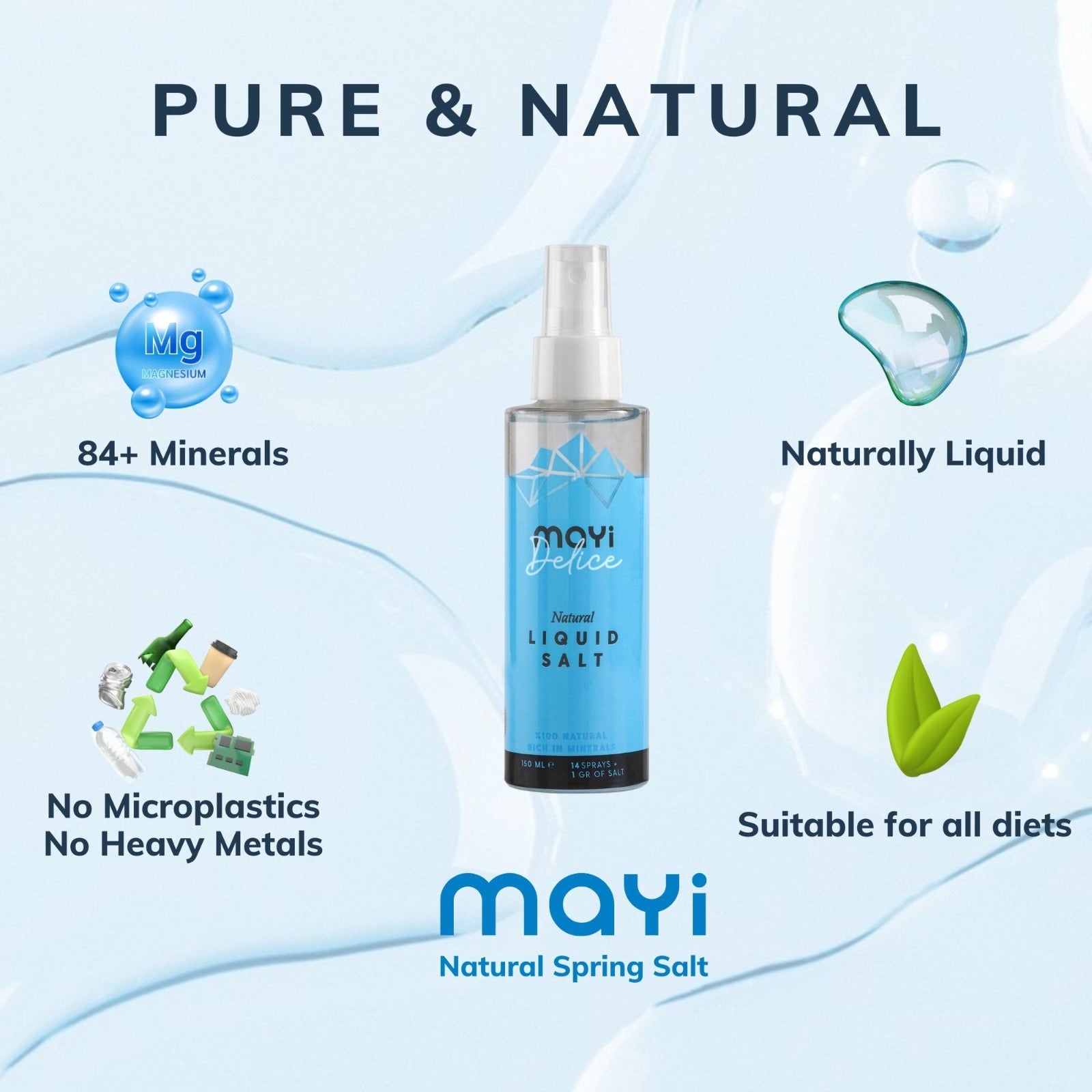 This 100% natural spring water salt is unprocessed, unrefined—only cleaned and packaged. Its spray packaging offers practical use. Free from harmful chemicals, it contains 84 beneficial minerals like lithium, vanadium, iron, magnesium, and calcium. No added iodine; insoluble matter is 0.