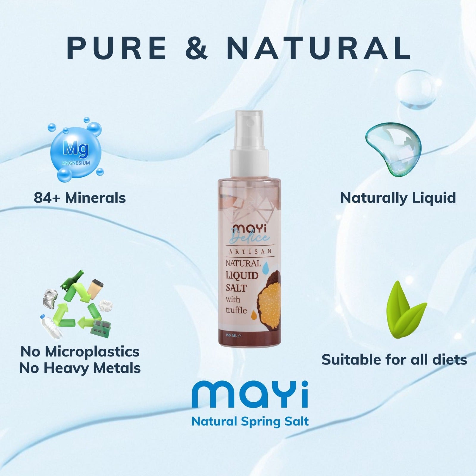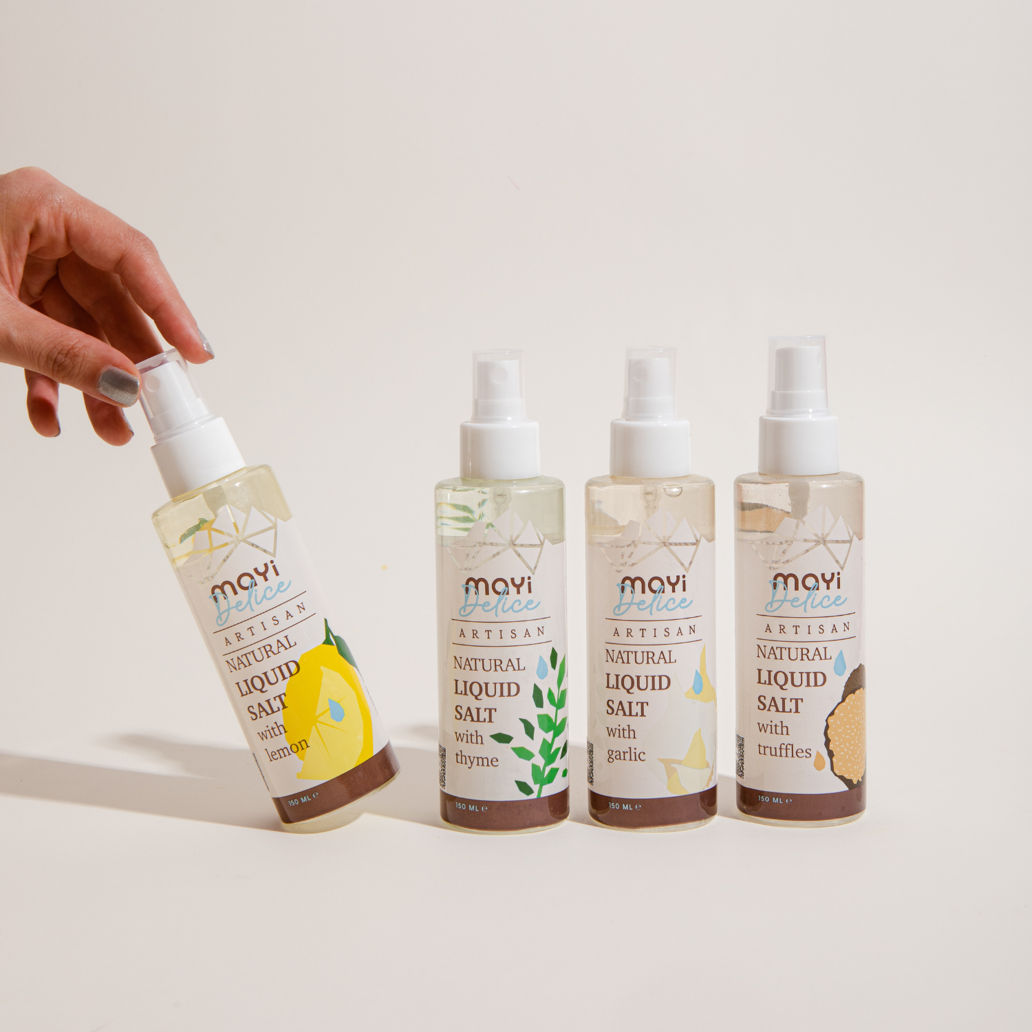 We combine our 5,000-year-old liquid spring salt with garlic, thyme, truffle and lemon to create a convenient and lasting flavor. Mayi Artisan Flavored Spray Salt will be your go-to product for enriching dishes and adding a special touch. This flavor will make you love cooking even more and will make you never want to leave the kitchen.